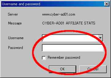 “Usename”と“Password”を入力して「OK」をクリックします。