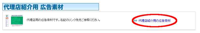 下のほうの代理店紹介用広告素材欄の「代理店紹介用の広告素材」をクリックします。