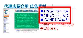 “小さめのバナー広告” “大きめのバナー広告” “ブログ用小さめ広告”の中から好きなものをクリックします。
