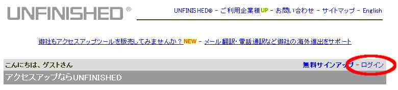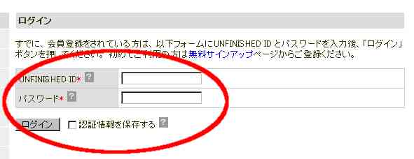 “UNFINISHED ID”と“パスワード”を入力して「ログイン」をクリックします。