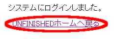 システムにログインしました。と出たら「UNFINISHEDホームへ戻る」をクリックします。