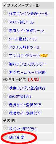 左側メニューの下のほう「紹介制度」をクリックします。