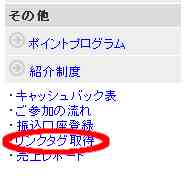 “紹介制度”のすぐ下の「リンクタグ取得」をクリックします。