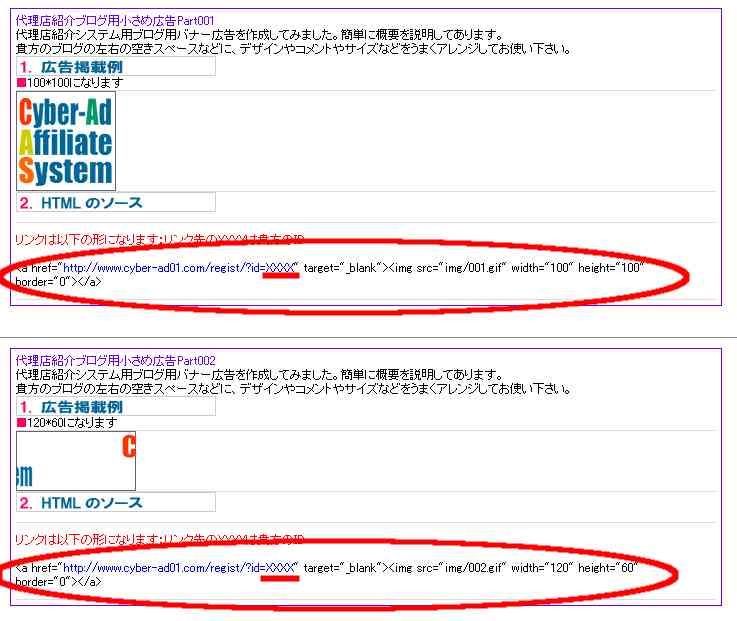 これでバナーコードが表示されますので、好きなバナーをブログに掲載します。