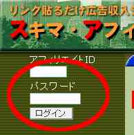 左上の“アフィリエイトID”と“パスワード”を入力して「ログイン」をクリックします。
