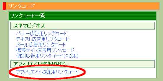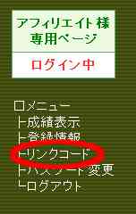 「アフィリエイト登録用リンクコード」をクリックします。